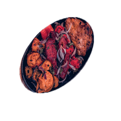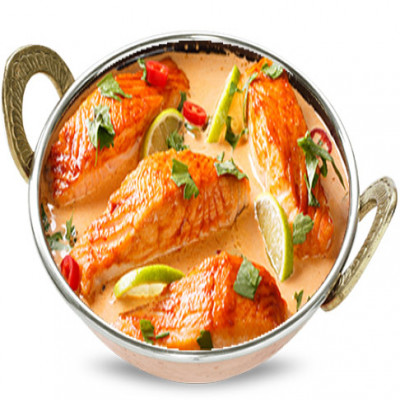 morceaux de saumon cuit dans le tandoor avec ail, poivrons verts et coriandre